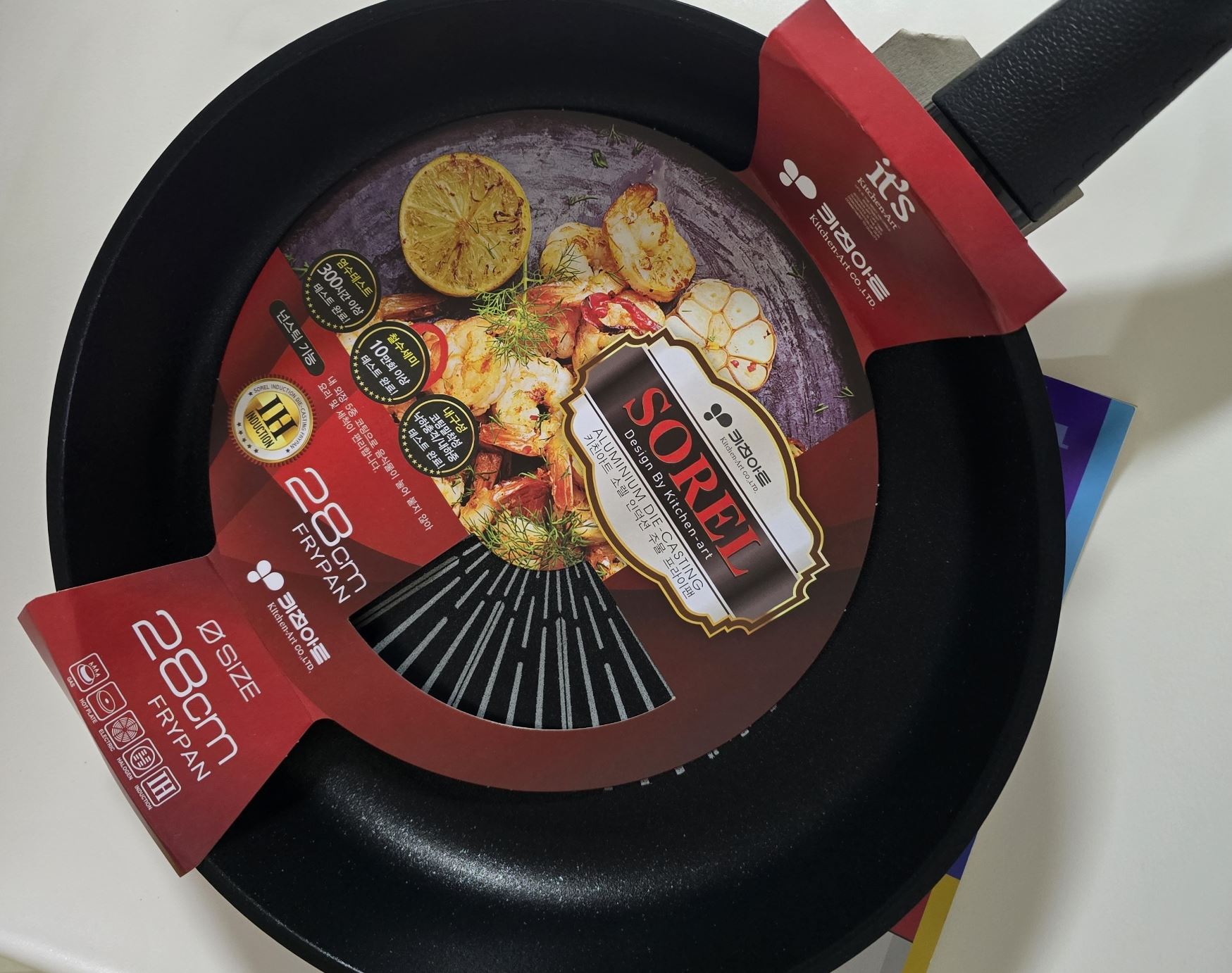 집에 와서 뜯어보니 더욱 마음에 듭니다. 키친아트 28cm 프라이팬으로 인덕션에서도 사용가능합니다.